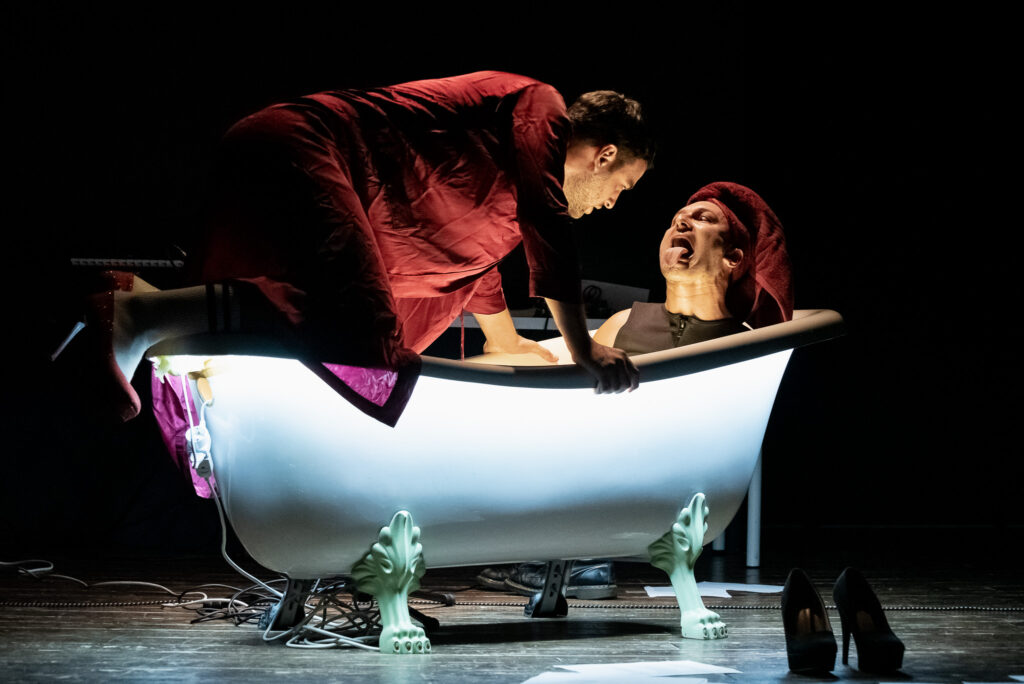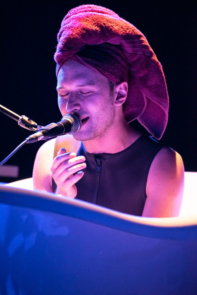 In un dialogo tra femminile e maschile, incarnando comodamente il neutro, Marcel affronta i temi dell’identità e dell’accettazione attraverso una forma performativa molto simile a un live show di stand-up comedy musicale. Il racconto contiene infatti brani e passaggi della cultura musicale pop contemporanea, italiana e internazionale. Un live set ambientato tra il fondo di un mare artificiale e la terraferma, in cui il protagonista si confronta con il pubblico, indagandosi. Il protagonista vive contemporaneamente un tormento artistico e privato. E’ un ragazzo che ha scelto di proteggersi con l’arma della solitudine, riversando in un nuovo personaggio la paura della vita così come quella, speculare, della morte. Entrambe le sue parti restano mosse dal medesimo suono, quello che spinge ogni artista a saziare la stessa fame di infinito. Il suono non è solo musica, ma è anche voce, rimandi sonori agli elementi dell’acqua e alla vita sulla terra che rappresenta l’ignoto, la libertà. La Sirenetta vive la sua esperienza come una grande performance, uno spettacolo di danza, musica e parole. I brani scelti sono riarrangiati e entrano nella storia come elemento che caratterizza l’atmosfera e i passaggi della narrazione. Essi raccontano la confusione, il disordine e i suoni delle fantasie di Marcel così come le tappe del suo viaggio.