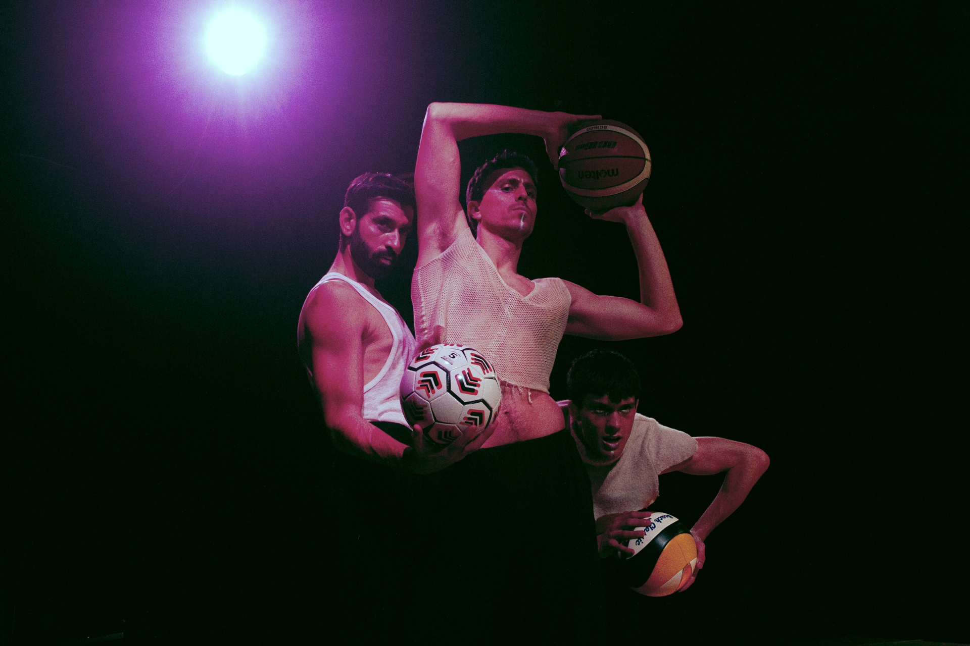 In scena, oltre i due protagonisti, le tre parche, simboli di quel fato sia benevolo che maligno, imparziale, che conduce ogni azione e ogni scelta. Il loro è un lavoro fisico corale, come un corpo di ballo che fa da sfondo alle vicende dei protagonisti, o meglio una scenografia umana, da cui arrivano input: segnali, voci, canti, richiami sonori, impulsi di movimento, proposte di caratterizzazione dello spazio, gestione dell’assetto tecnologico e musicale. All’interno dei quadri le parche rappresentano la classicità ellenica e hanno una funzione narrativa. Ci agganciano e ci riconducono alle vicende narrate nell’Iliade. Nel costume, nella posizione che occupano nello spazio, ma soprattutto nel linguaggio, esse si discostano completamente dagli altri personaggi.